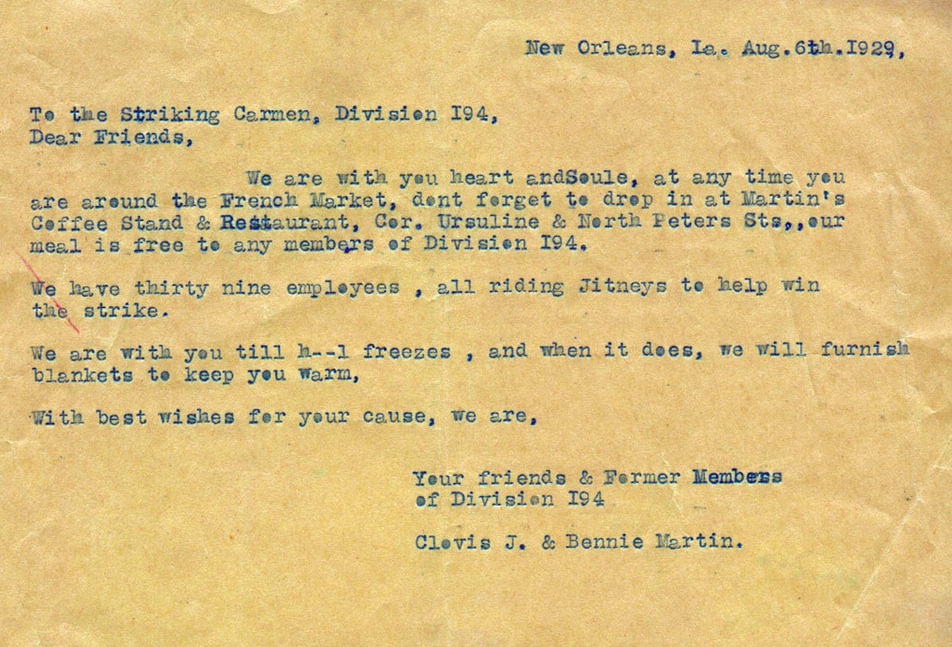 The telegram that the Martin Brothers sent the strikers is legendary in New Orleans: