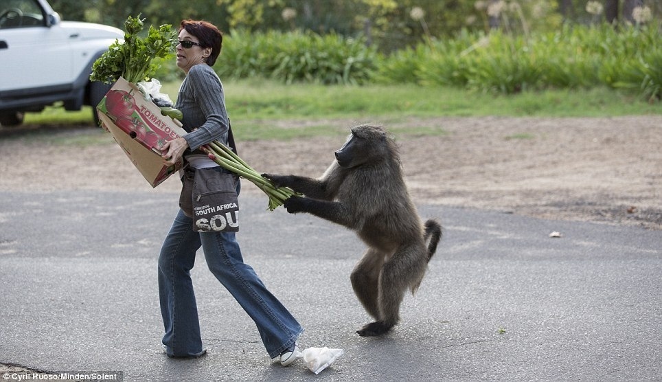 There are now 500 baboons living in the city and their food gathering tactics are getting more daring. The chacma baboon patiently waits for people to leave the farmers’ market where fresh vegetables are on sale.