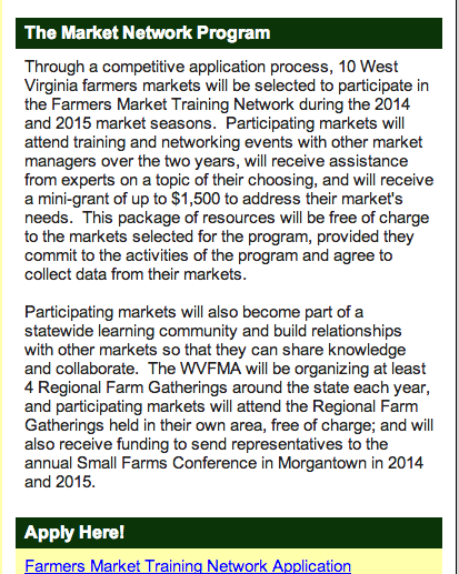 Another fascinating statewide training program for markets is being developed, this time in West Virginia. Much excellent work seems to be going on there.