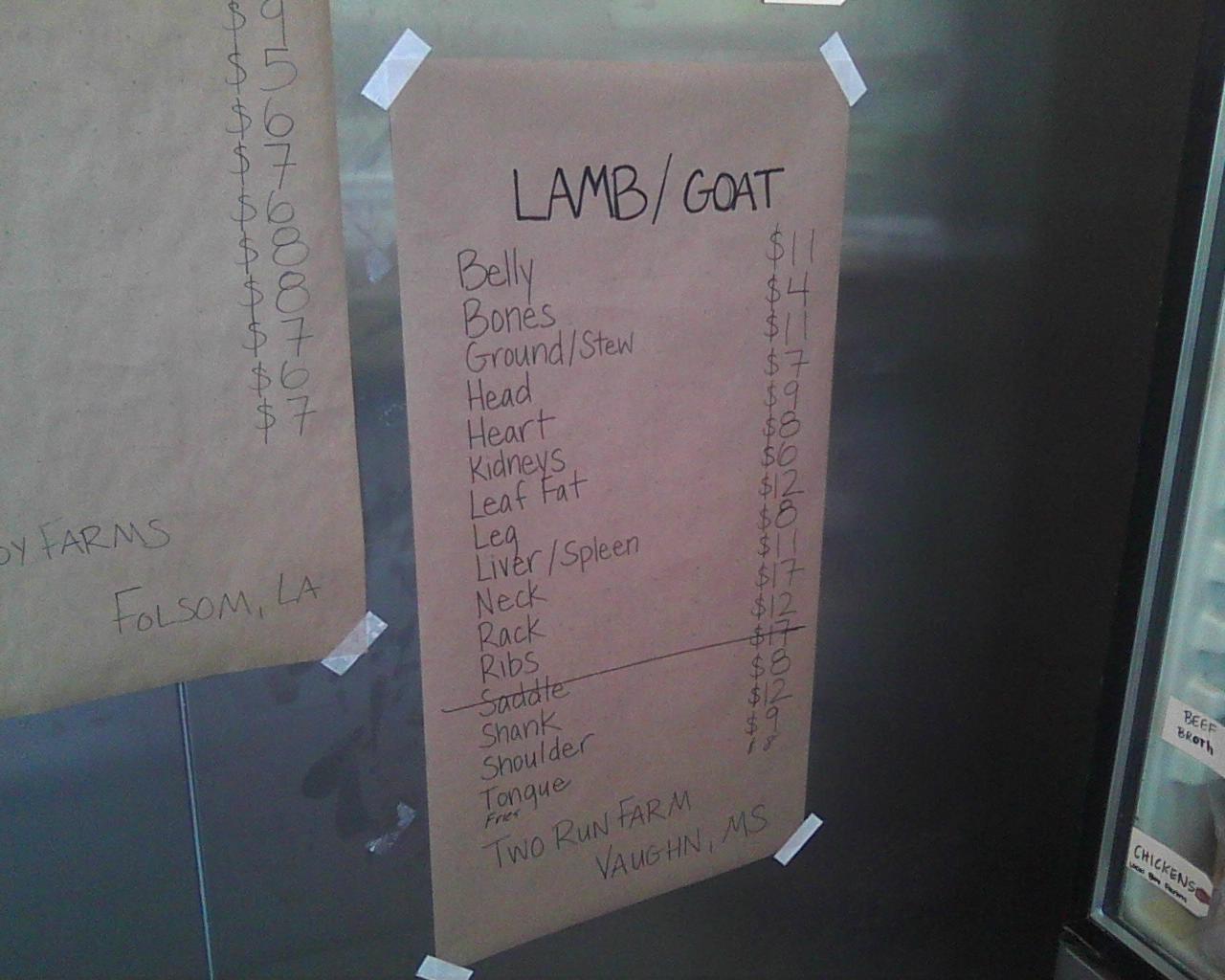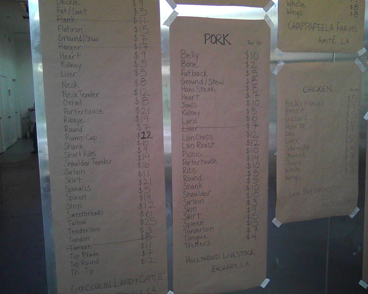 I just visited the newest member of the New Orleans localvore family, Cleaver & Co. a no-frills, full-service butcher shop. The posted educational information at this store is easily understood but when necessary, the staff is quite knowledgeable when it comes to more in-depth questions. It makes me think about how we communicate livestock issues and value within farmers markets; has the consumer education gone as deeply as it has for fruit and vegetable production? Should market managers explain the regulation and production issues in more detail than we have? Really, how much do market managers actually know about what unique issues these producers face, such as amount of land needed for grazing, treating animal illnesses naturally, finding healthy feed, selecting the right USDA processor when applicable and so on…