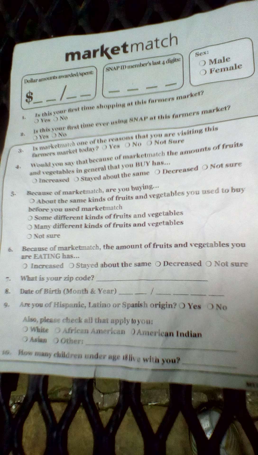 Self-administered survey-New Orleans Market Match user