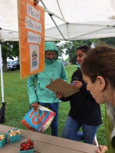 Dave and his fellow board member Hannah Blackmer were our leads for the this farmers market collection. This required a very different plan than South Hero, as the Montpelier market is much larger and is situated on a busy shopping district street. As most Vermonters know, this beloved market has been around for 40 years, but has already had to move locations more than once, and will have to do that again after this year. So questions about location had to be added to this survey which meant a flurry of emails and even some refinements to the survey on Saturday morning- thankfully, there is a copy/print company right down the street that was open.