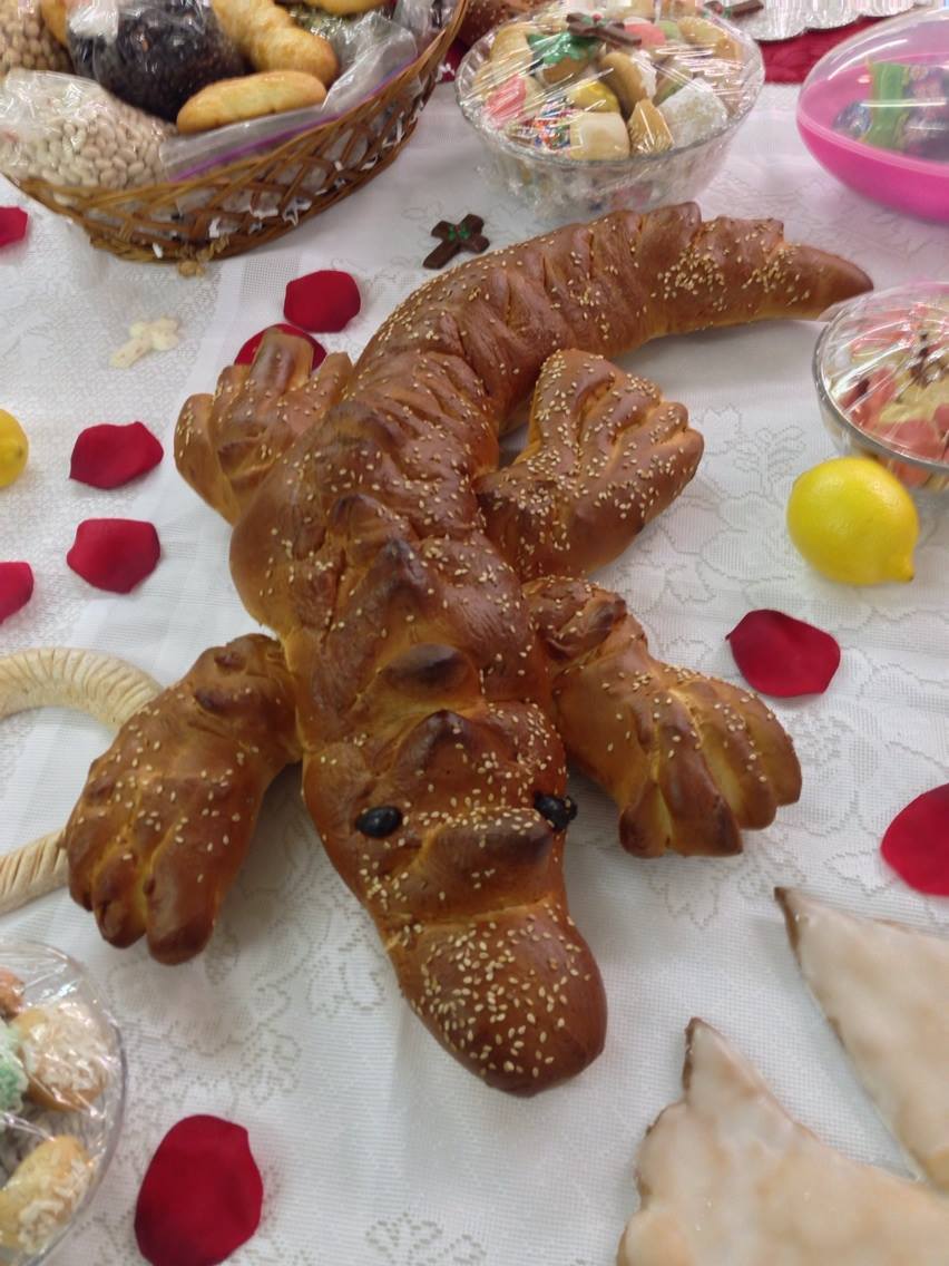 Several breads are made that represent both Jesus and St. Joseph. The symbols include ladders, hammers, nails, saws, lilies, and a staff for St. Joseph; and crosses, palms and wreaths (for the crown of thorns) for Jesus.